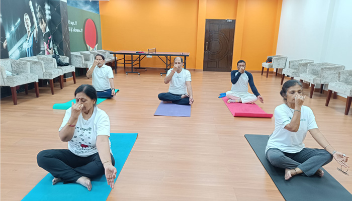 Experience tranquility and inner peace at Eastern Metropolitan Club's dedicated yoga space. Our expert-led yoga sessions help you rejuvenate your mind and body through a mix of traditional and modern techniques. Whether you're a beginner or a seasoned practitioner, our classes cater to all levels and focus on flexibility, strength, and mindfulness. The serene ambiance, coupled with personalized attention, creates the perfect environment to unwind and de-stress. From Hatha to Vinyasa, our diverse sessions provide a holistic wellness experience. Regular yoga practice enhances mental clarity, boosts immunity, and improves posture. Embrace a healthier lifestyle with our thoughtfully curated yoga programs. Step onto the mat and let your wellness journey begin with us.