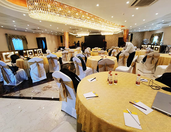Jade 2, identical to its counterpart, spans 796 sq. ft. on the mezzanine floor, offering an air-conditioned setting perfect for small gatherings, corporate meetings, and intimate celebrations. With stairway access and no adjoining open space, it ensures exclusivity and a focused environment. The stylish decor and well-equipped amenities make it an excellent choice for professionals and socialites alike. If you're looking for a compact yet elegant venue, Jade 2 is the perfect option to host seamless and successful events.