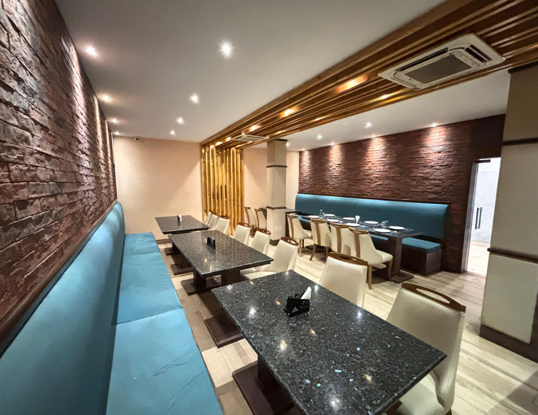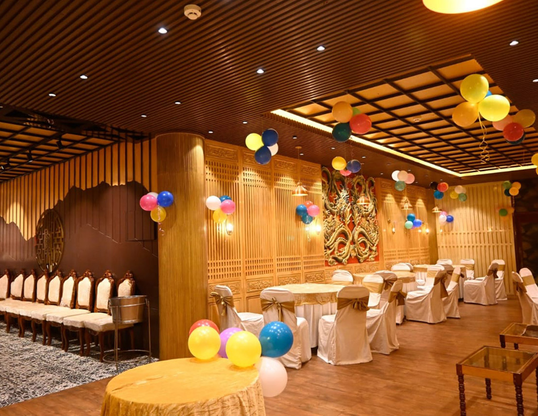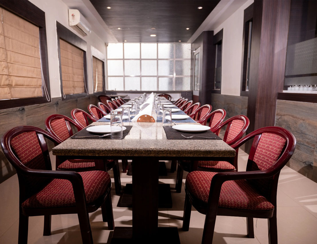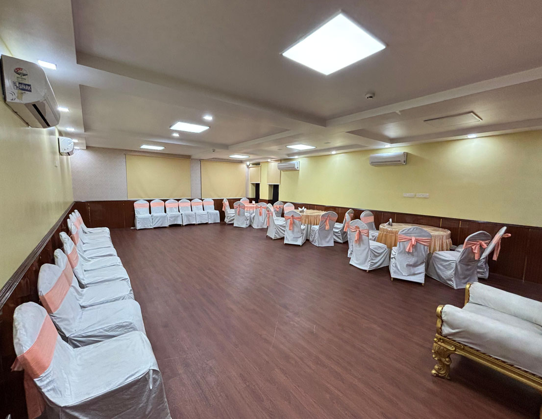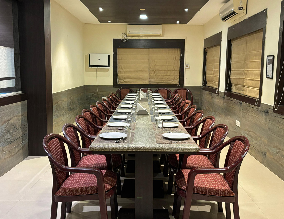 Located on the first floor, Sapphire is a 396 sq. ft. fully air-conditioned banquet hall, thoughtfully designed for small gatherings, get-togethers, and boardroom meetings. With no adjoining open space and stair access, it offers a peaceful and exclusive setting for both corporate and social events. The well-appointed interiors and comfortable seating arrangements make it a top choice for professionals and hosts who value elegance and efficiency. Whether it’s a business discussion or a private celebration, Sapphire ensures a premium experience in a sophisticated environment.